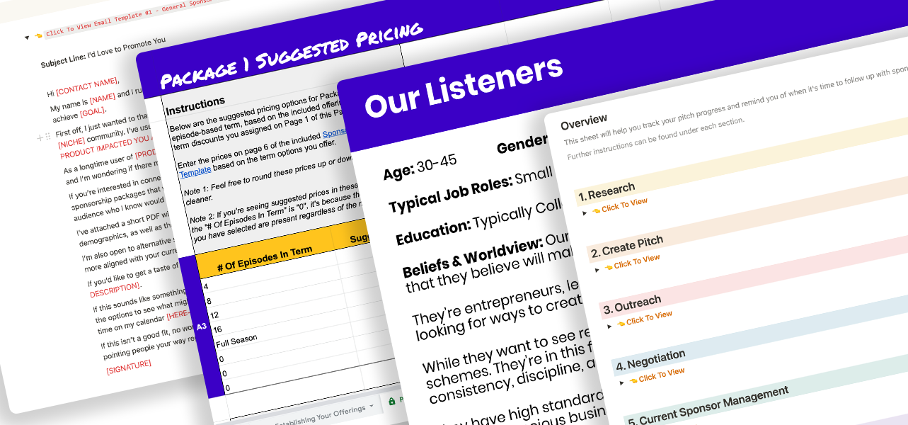 2. Pitch Deck Template - To make it easy to give potential sponsors all the information they need about you, your show, and your audience in a well-designed package.